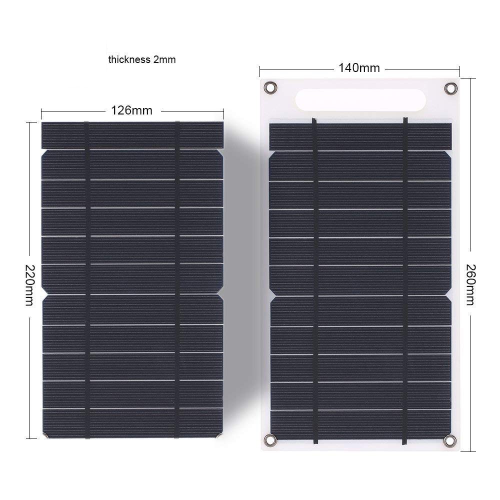 Dit 8W mini-zonnepaneel met dubbele DC/USB-uitgang en IP67 waterbestendigheid, USB-uitgang is compatibel met smartphones, tablets, enz., wat perfect is voor verschillende buitenactiviteiten die het gebruik verlichten, zoals kamperen, wandelen, paardrijden, vissen en noodgevallen.