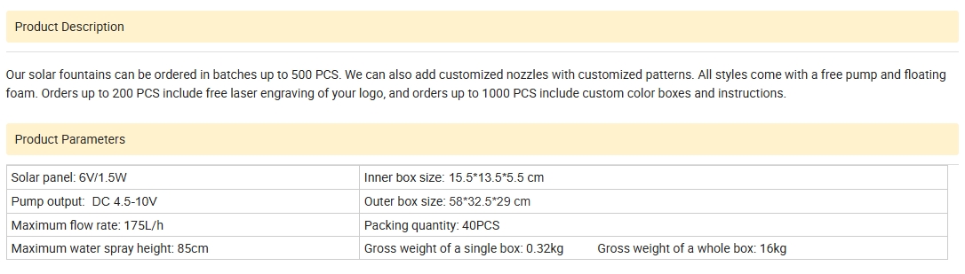 Bewerk fabrieks directe aanbod zonnewaterpomp fontein, zwembadfontein, rubbuurfontein, vissentankwatercirculatie